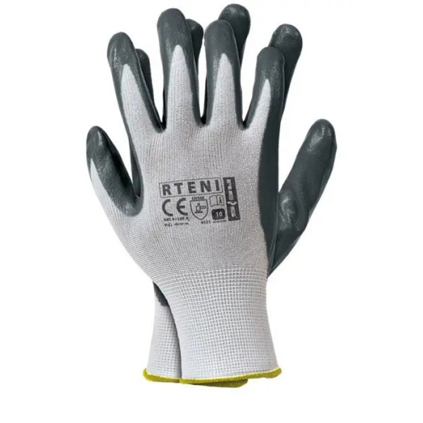 Рукавиці RTENI WS з поліестеру, покриті нітриловим покриттям, призначені для надійного захисту та комфорту під час виконання різних видів механічних робіт. Їх оброблений рант та підвищена стійкість до стирання забезпечують оптимальний рівень комфорту та захисту.