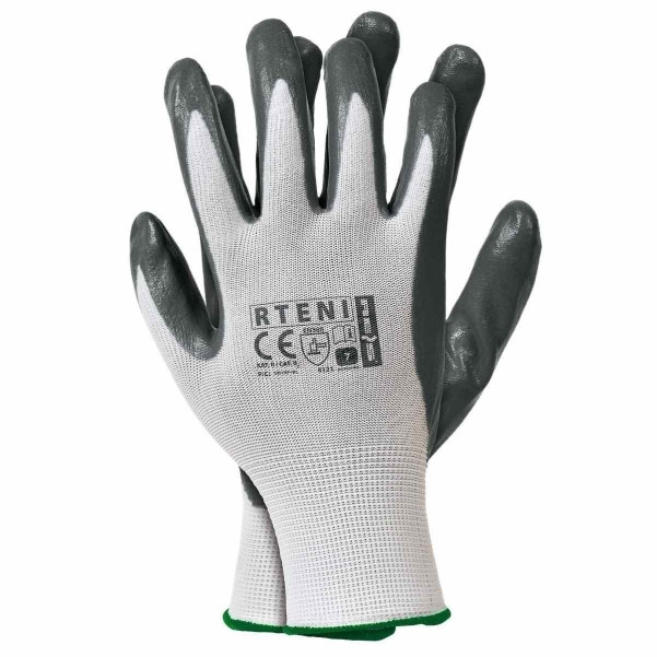 Рукавиці RTENI WS з поліестеру, покриті нітриловим покриттям, призначені для надійного захисту та комфорту під час виконання різних видів механічних робіт. Їх оброблений рант та підвищена стійкість до стирання забезпечують оптимальний рівень комфорту та захисту.