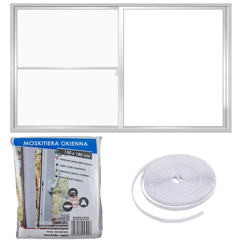 Сітка москітна на вікно Біла з липучкою розміром 150x180см - ваш надійний захист від надокучливих комах та відчайдушний спосіб зберегти ваш приміщення чистим і свіжим. Ця сітка ідеально підходить для різних вікон, забезпечуючи надійний бар'єр для москітів та інших комах, які можуть вторгатися у ваш простір.