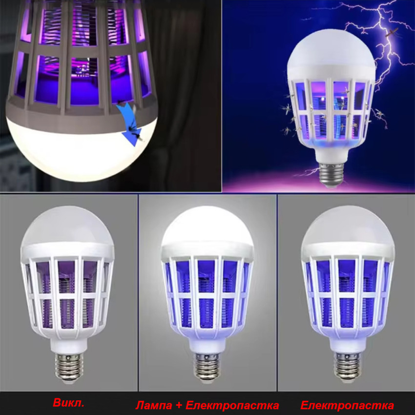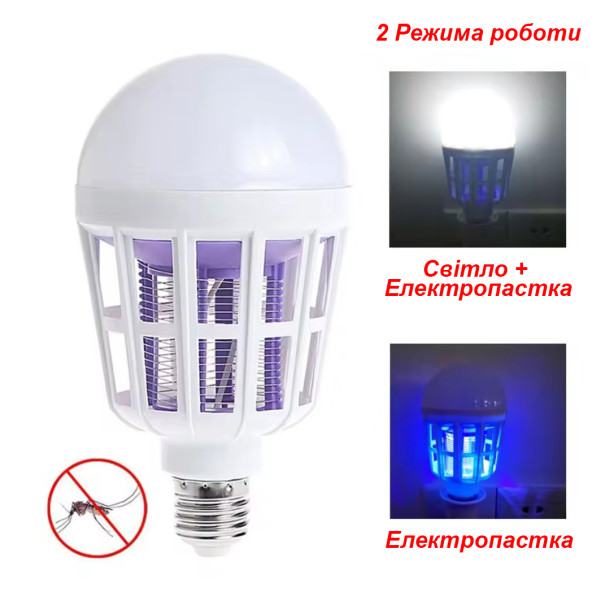 Ця багатофункціональна 15W LED лампа поєднує потужне освітлення та ефективну боротьбу з комахами в одному пристрої. Лампа підтримує два режими роботи: