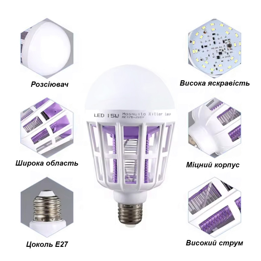 Замовляйте антимоскітну LED лампу 15W вже зараз та насолоджуйтесь бездоганним світлом без комах!