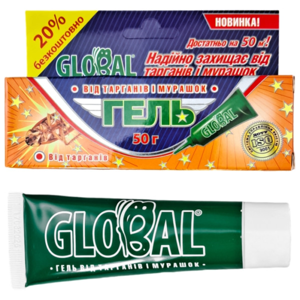 Гель "Global" – це ефективний засіб для боротьби з тарганами та мурахами. Завдяки зручній тубі та спеціальній насадці, його легко використовувати навіть у важкодоступних місцях. Продукт безпечний у застосуванні та забезпечує швидкий результат.