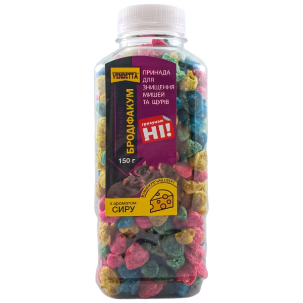 Засіб від мишей та щурів гранули "Vendetta" з ароматом сиру допоможе зберегти ваше приміщення чистим і безпечним від гризунів. Замовте зараз та насолоджуйтесь спокоєм у вашому домі!