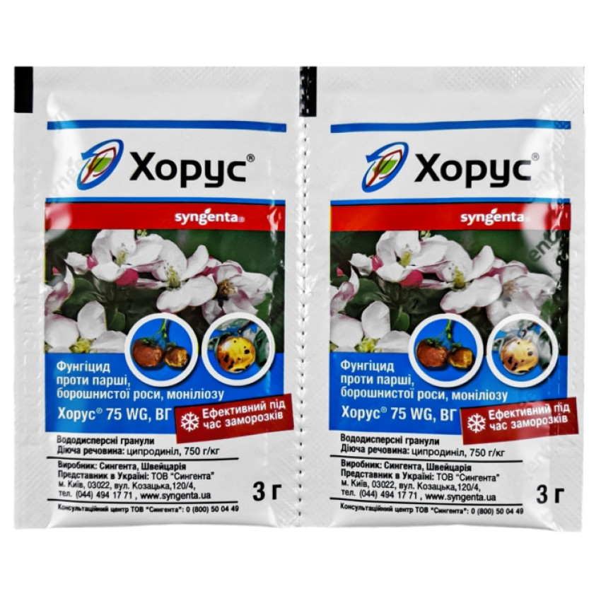 Фунгіцид Хорус - надійний помічник у боротьбі з грибковими та бактеріальними захворюваннями овочевих та плодово-ягідних культур. Цей продукт містить активний компонент ципродиніл, який швидко проникає в рослину і ефективно усуває патогени, навіть на важкодоступних ділянках. Фунгіцид діє ефективно навіть при низьких температурах, що робить Хорус ідеальним вибором для різних кліматичних умов.
