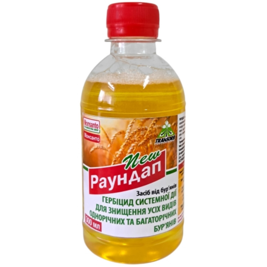Опис продукту: Гербіцид суцільної дії Раундап від Monsanto є універсальним засобом для ефективного управління будь-якими видами бур'янів. Він повністю знищує однорічні та багаторічні, злакові та дводольні бур'яни, включаючи їх наземні та підземні частини. Підходить для обробки таких культур і ділянок, як пари, зернові, смуги відчуження ліній електропередач, газо- та нафтопроводів, узбіччя доріг, залізничні насипи, плодові насадження, виноградники, ріпак, соняшник, соя, горох та інші.