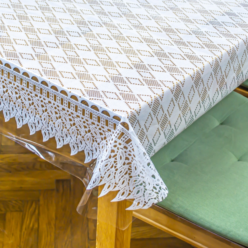 Прозора основа: забезпечує легкість і ненав'язливість, дозволяючи демонструвати красу вашого столу або підкладку під скатертиною. Ідеально підходить для будь-якого дизайну, додаючи ніжний шар елегантності.