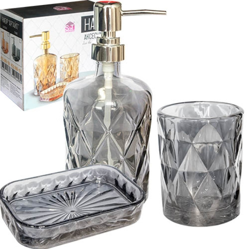 S&T Набір скл. для ванної 3-пр. Грані графіт (мильн., стакан, диспенсер) 888-155