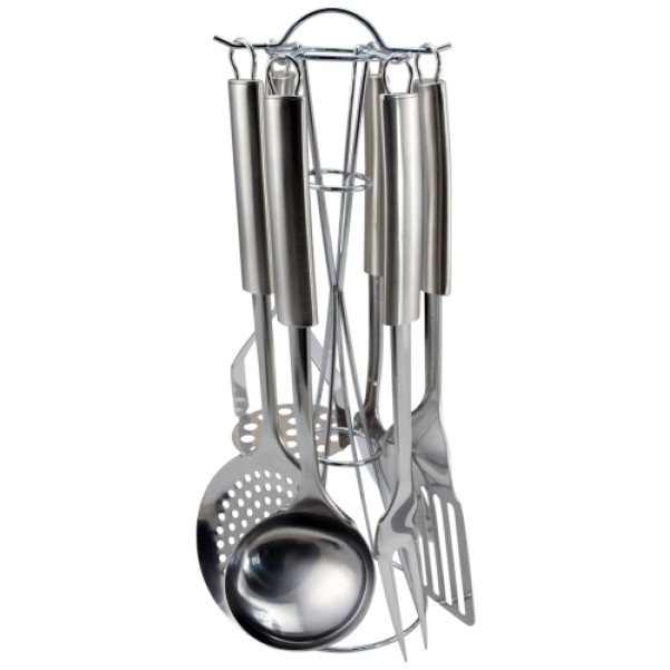 Кухонний набір "Том" складається з 7 високоякісних інструментів, виготовлених із харчової нержавіючої сталі. Цей набір є незамінним помічником на вашій кухні, забезпечуючи всі необхідні засоби для приготування різноманітних страв.