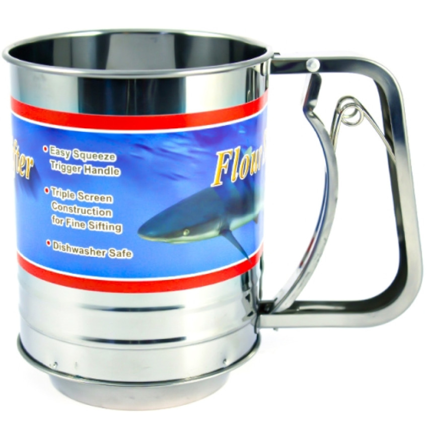 Сито механічне з нержавіючої сталі для просіювання борошна, цукрової пудри, манки, какао і дрібних сипучих продуктів.