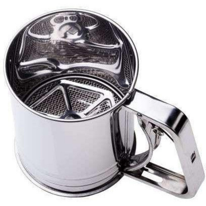 Сито кухоль - це механічне пристосування з нержавіючої сталі для просіювання дрібнодисперсних сипучих продуктів: борошна, цукрової пудри, манки, какао тощо. Завдяки цьому зручному ситу для просіювання продукти просіваються швидко та легко. За допомогою просіювання борошно та інші сипкі очищаються від домішок, насичуються киснем.
