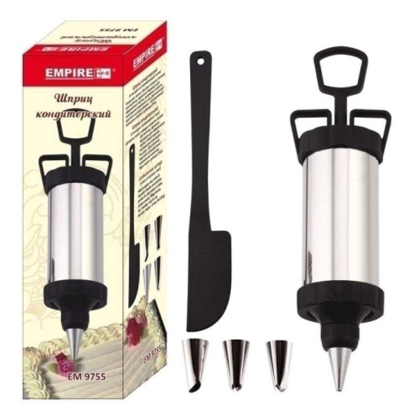 Кондитерський шприц EMPIRE з 4 насадками - стане незамінним помічником кондитеру-початківцю. Має в своєму арсеналі 4 основні насадки, які дозволять шикарно прикрасити будь-який кондитерський шедевр.