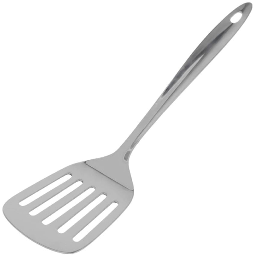 Лопатка з прорізами з нержавіючої сталі є універсальним кухонним інструментом, призначеним для перевороту, перемішування і видалення продуктів під час готування. Вона виготовлена з високоякісної нержавіючої сталі, що забезпечує міцність, довговічність і стійкість до корозії.
