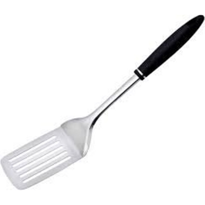 Лопатка із нержавіючої сталі з пластиковою ручкою перфорована 35см