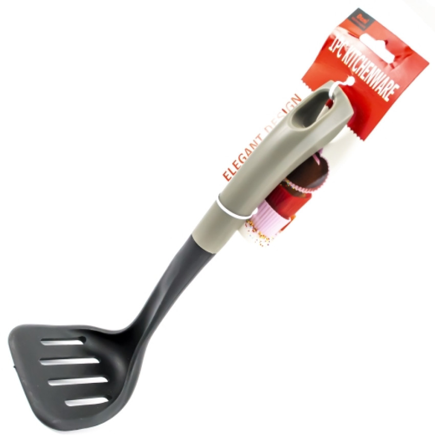 - Лопатка з прорізами зручна для смаження тим, що забезпечує стікання зайвого масла або жиру з продуктів при перевертанні або перекладанні на тарілку.