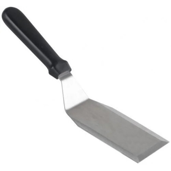 Кондитерський шпатель з нержавіючої сталі незамінний при роботі з глазур'ю, мастикою, кремом, тестом, карамеллю та шоколадом. Він ідеально формує лінію, задає форму та вирівнює поверхню.