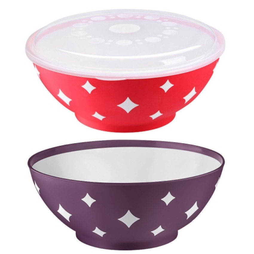 Кругла миска для продуктів, виготовлена з гіпоалергенного матеріалу - поліпропілен Т. Об'єм миски становить 3 л. На миску нанесений оригінальний принт у вигляді зірочок. Дуже міцна до механічних та хімічних впливів, не вбирає та не має запахів. Дуже легко і добре миється. Зручна у використанні для зберігання продуктів. Можна мити в посудомийній машині, зберігати в холодильнику та морозилці. Дана продукція представлена у різних варіаціях кольору.