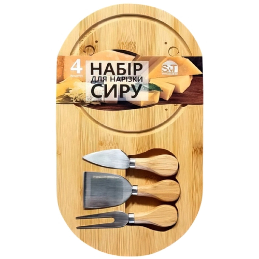 Набір для нарізки сиру (дошка бамбукова + 3 ножі) 33х18х1см
