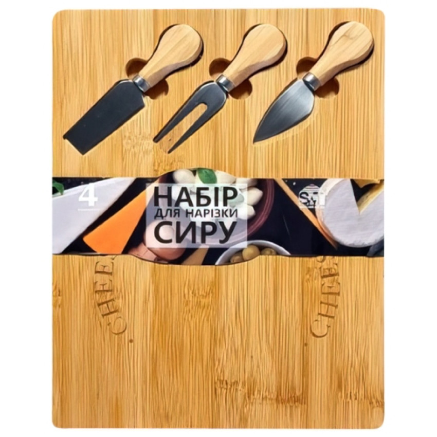 Набір для нарізки сиру (дошка бамбукова + 3 ножі) 33х25х1см
