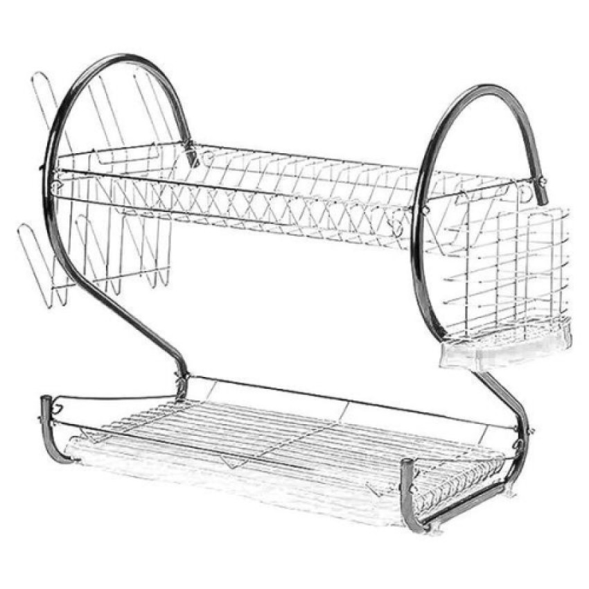 Сучасна зручна сушарка для посуду, яку можна встановити як біля мийки, так і в шафці. Призначена для сушіння тарілок, чашок, мисок та іншого посуду. У комплект також входить пластиковий лоток, в якому зручно розміщуються різноманітні столові прилади. Вона повністю виготовлена з якісної нержавіючої сталі, що гарантує її довговічність.