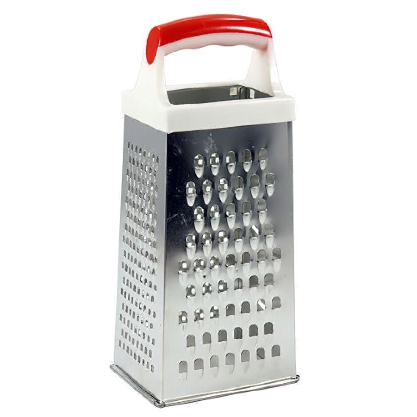 Тертка чотиристороння прямокутна - терка з великими ріжучими сторонами для найбільш зручного подрібнення будь-яких продуктів. Виготовлена з нержавіючої сталі, яка не ржавіє, легко миється вручну, практична в користуванні. Ручка і основа прогумовані, щоб не ковзати і не дряпати робочу поверхню. Терка з нержавійки має чотири типи гострих лез - великі, середні, малі та поздовжні для слайсів.