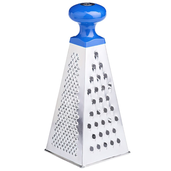 Тертка чотирибічна квадратна, виготовлена з неіржавкої сталі. Має 4 площини для різних операцій. Ергономічна ручка виготовлена з міцного пластику з гумовим нековзним покриттям. Завдяки гумовій основі тертка стійка та не ковзає робочою поверхнею.