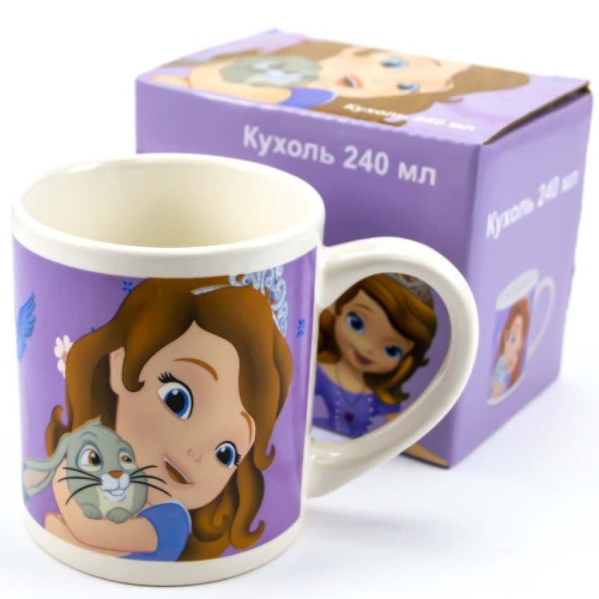 Чашка фарфорова дитяча "Принцеса Софія" 240 мл.Чашка із кераміки для гарячих та холодних напоїв. Чашка білого кольору із тематичним малюнком. Допускається миття в посудомийній машині та використання у мікрохвильовій печі. Подарункова упаковка в комплекті.