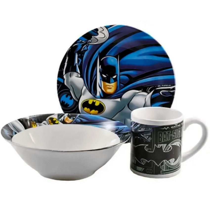 Тарілка дитяча фарфорова - розмір 20см: Ця тарілка має круглий формат і зображення Бетмена на ній. Вона ідеально підходить для подачі сніданків, обідів або вечерь для вашої дитини. Тарілка виготовлена з високоякісного фарфору, що забезпечує її міцність та довговічність.