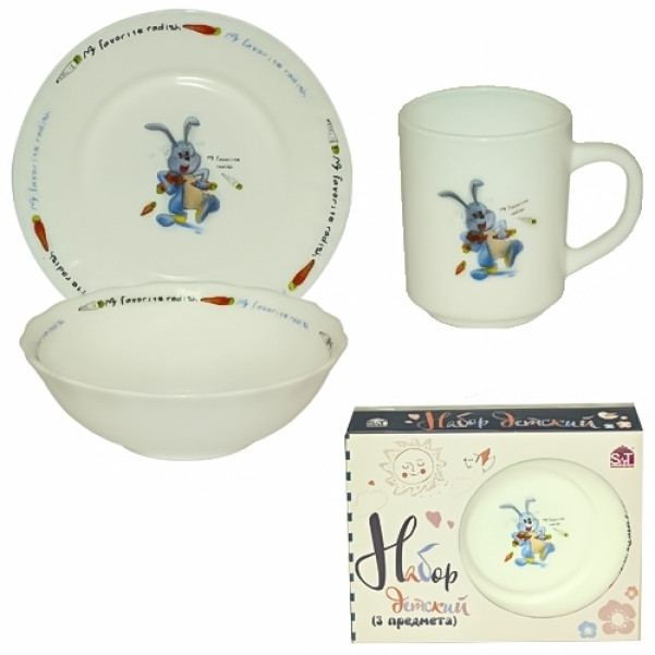 Набір склокерамічного дитячого посуду 3-предмета Зайчик