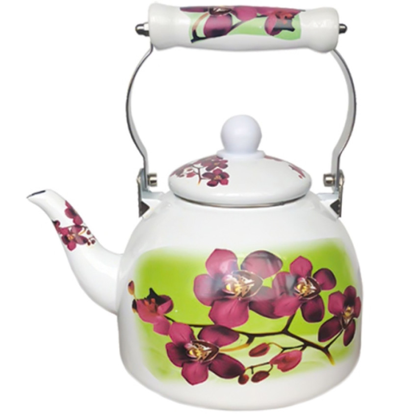 Чайник емальований з керамічною ручкою 2л Орхідея