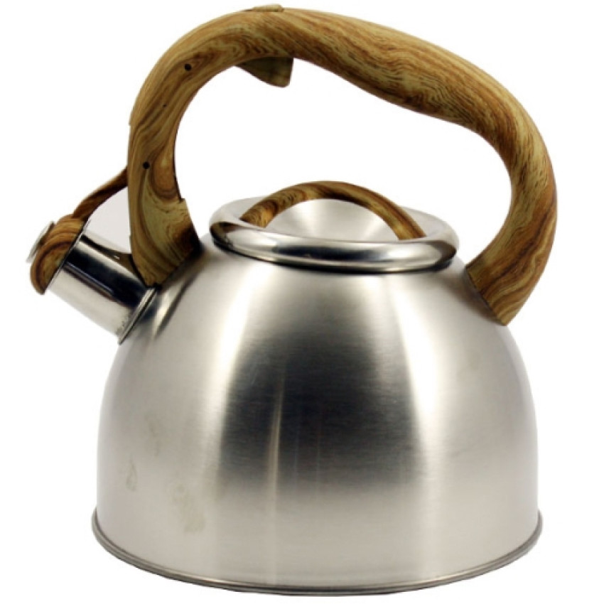 Чайник із нержавіючої сталі на 2,5 літри стане невід'ємною частиною Вашої кухні. Подвійне капсульне індукційне дно в чайнику з нержавіючої сталі чудово підійде як для індукційних плит, так газових, електричних або склокерамічних плит. Ручка чайника має ергономічну форму і не нагрівається при використанні чайника, тому що виконана зі сплаву пластмаси (бакеліту) і додатково вкрита м'яким силіконом. Свисток чайника з нержавіючої сталі відкидається легким .
