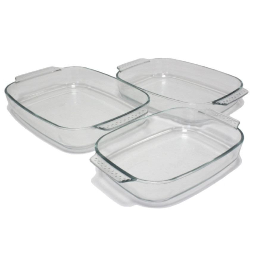 Набір з 3 скляних форм (деко) поєднує в собі елегантний дизайн та прозорість, демонструє відмінну стійкість до високих температур .