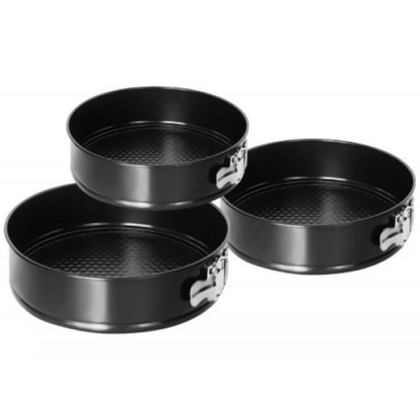 Роз'ємні круглі форми для випікання трьох розмірів.Виготовлено форми з екологічно чистої вуглецевої сталі з антипригарним покриттям.