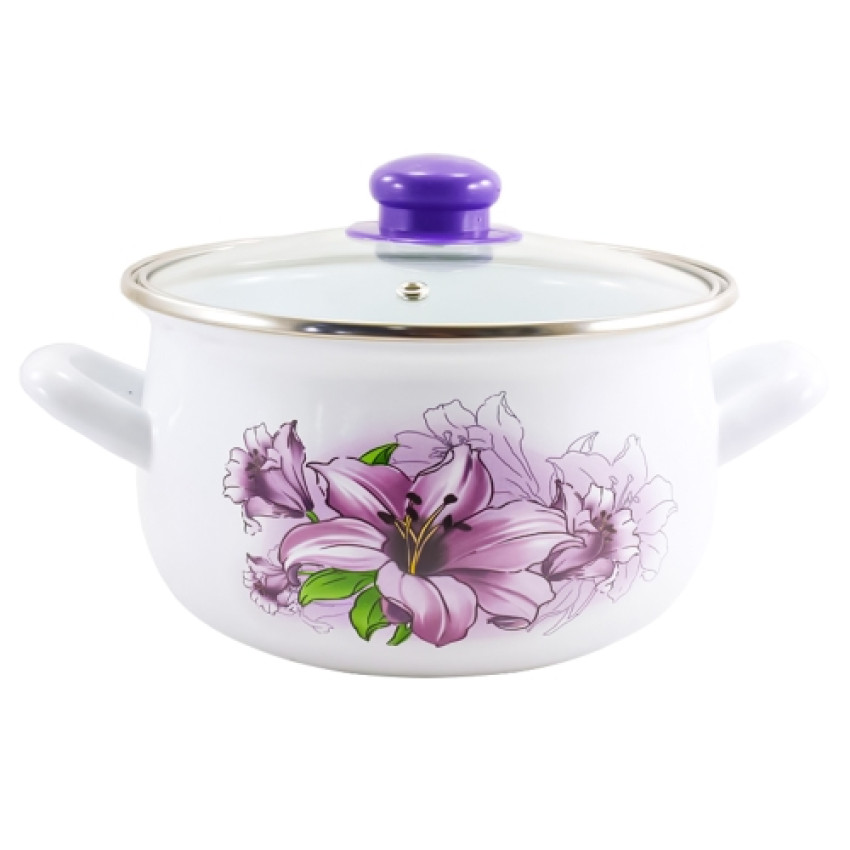 Фіолетова лілія, що оздоблює зовнішню сторону каструлі, надає їй елегантний і стильний вигляд. Вона створює особливу атмосферу на вашій кухні і додає нотку краси до приготування страв.