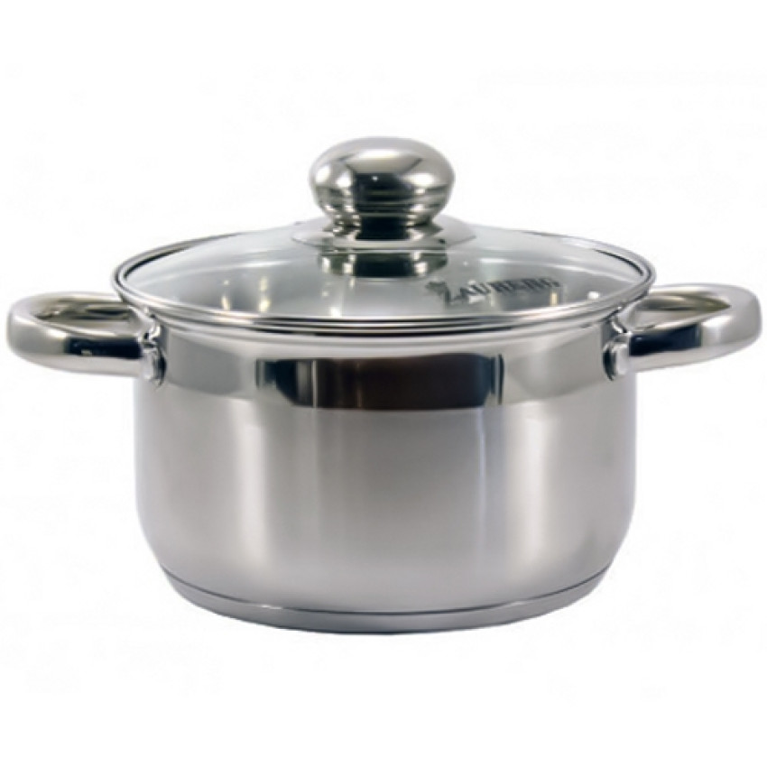 Каструля виконана з високоякісної нержавіючої сталі, яка не піддається корозії та впливу кислот. Ручки, що не нагріваються, з нержавіючої сталі, мають надійне кріплення. Кришка виготовлена з термостійкого скла з паровідведенням. Товщина стінок становить 0,6 мм, каструля має матове дзеркальне полірування. Може використовуватися на індукційних плитах. Каструля легко чиститься і зберігає бездоганний зовнішній вигляд протягом тривалого часу.