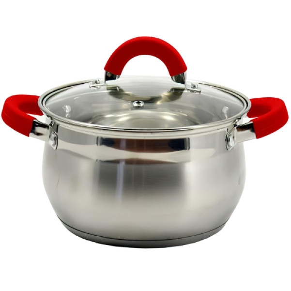 Кастрюля із нержавіючої сталі 4л (червоні ручки)