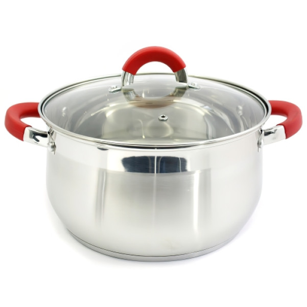 Кастрюля із нержавіючої сталі 5л (червоні ручки)