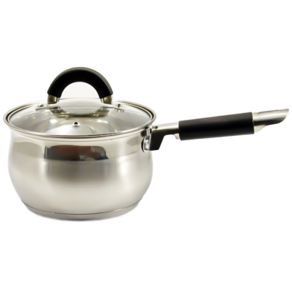 Ківш із нержавіючої сталі та скланою кришкою 1,3л (чорні ручки)