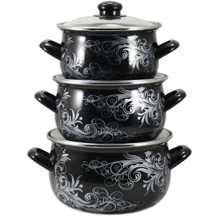 Набір емальованих кастрюль 3шт Срібло
