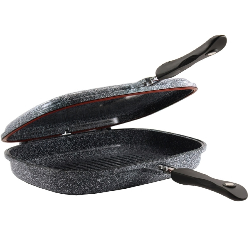 Сковорода гриль з мармуровим покриттям та кришкою двохстороння∅32см 0232-SN