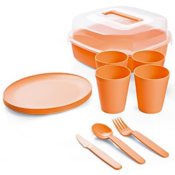 Універсальний набір для пікніка у зручному переносному боксі, це те, що ви шукали! Набір виготовлений із високоякісного харчового (первинного поліпропілену). Весь посуд виконаний у сучасному стилі, що підкреслить красу вашого пікніка, а яскраві тарілки та склянки буде легко знайти навіть на зеленій траві. Ще один плюс набору - це те, що посуд не б'ється і легко миється.