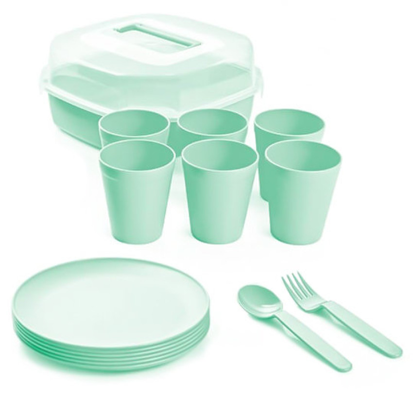 Незамінний подарунок для любителів туризму. Набір для пікніка - це все, що потрібно для організації заміської поїздки. Легкий посуд зручно взяти з собою. Яскраві кольори та привабливий дизайн створять затишну атмосферу та доповнюють радісні моменти на природі. Міцний пластик підходить для багаторазового використання.