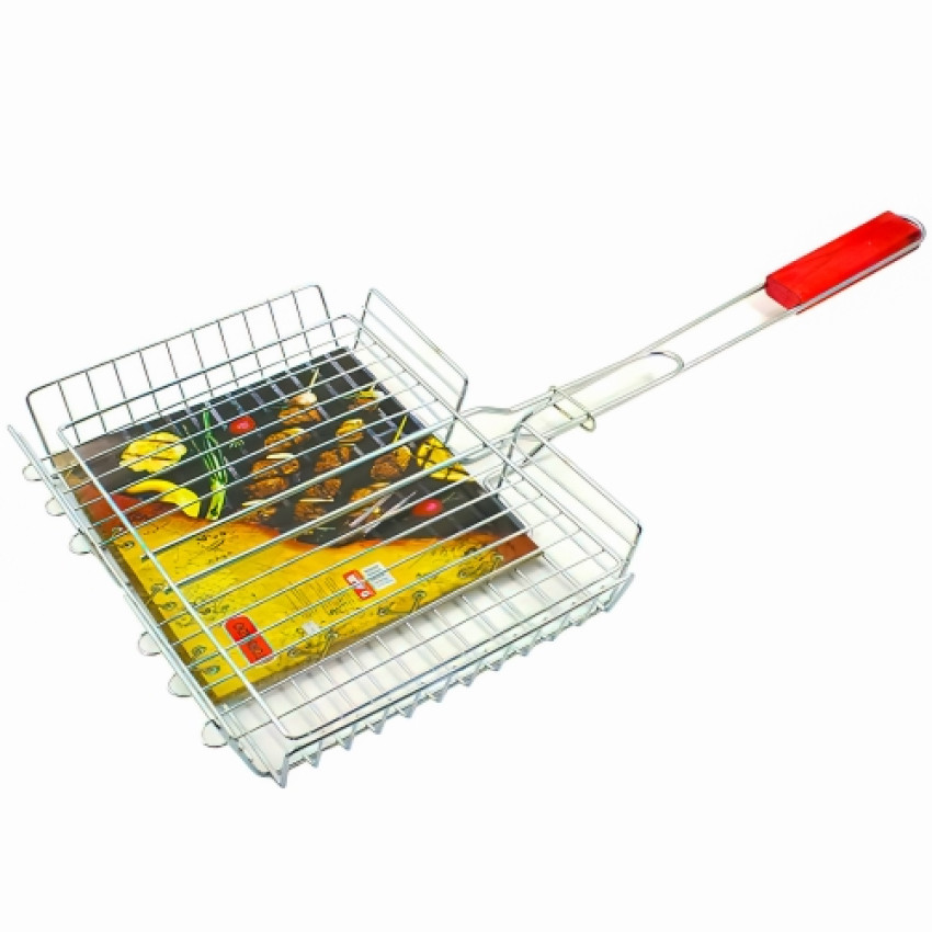 Решітка металева з деревяною ручкою для барбекю 30х22х27 5843 Interos. Решітка виготовлена з міцної сталі. Спеціально розроблена для збереження й цілісності продуктів під час грилювання. Продукт щільно фіксується верхньою частиною решітки, що дає змогу рівномірно обсмажити його з обох боків.