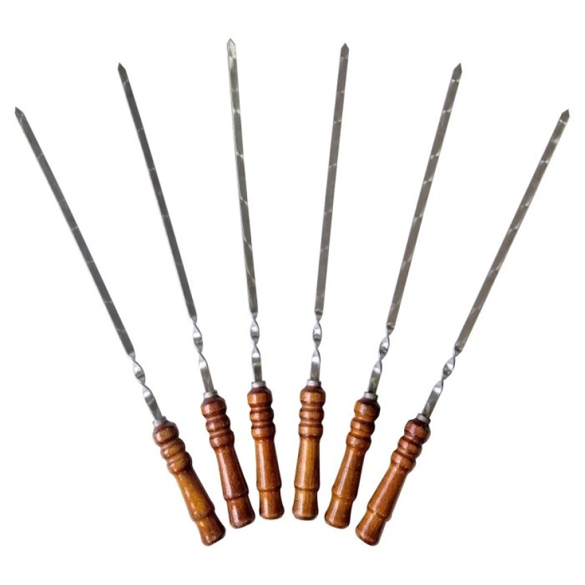 Шампури преміум класу - ідеальний подарунок, який залишить незабутнє враження. Виготовлені з використанням найкращих матеріалів, вони поєднують у собі елегантний дизайн, надійність та міцність. Дерев'яна ручка з лаковим покриттям, виготовлена не з смолистої породи дерева, що забезпечує довговічність та комфорт під час використання. Полотно шампура завтовшки 3 мм та шириною 12 мм забезпечує достатню міцність, щоб впевнено розмістити його на мангалі шириною до 60 см. Виготовлені з харчової нержавіючої сталі, ці шампури гарантують якість та безпеку при приготуванні страв.