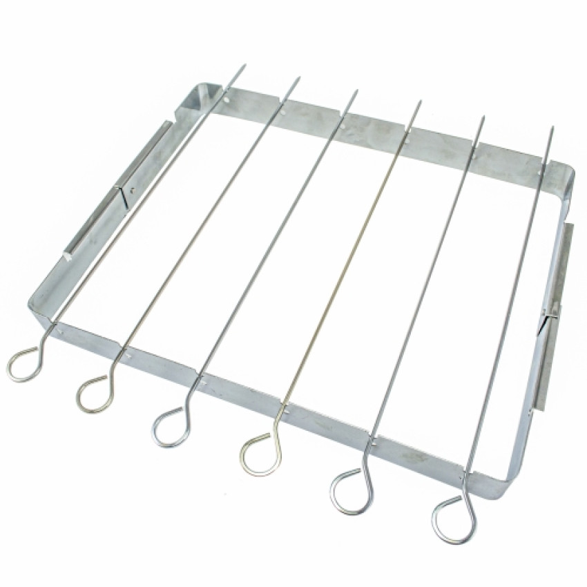 Виготовлений з високоякісної нержавіючої сталі, кожен шампур має довжину 35 см, що забезпечує зручне перевертання продуктів під час приготування. Стійка забезпечує надійне утримання шампурів під час готування, дозволяючи зберігати їх на відстані від вогню та забезпечуючи безпеку під час обробки. Цей комплект є необхідним інструментом для будь-якого любителя відпочинку на свіжому повітрі, який цінує комфорт, надійність та якість під час приготування страв на відкритому вогні. Стійка зручно складається, не займаючи багато місця в багажі, що робить її легкою у використанні та перенесенні, особливо під час подорожей.