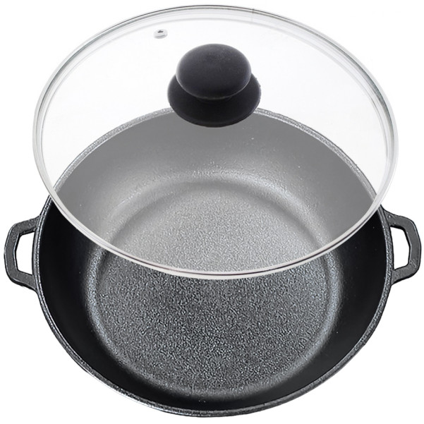 Жаровня чавунна лита 26х6см зі скляною кришкою