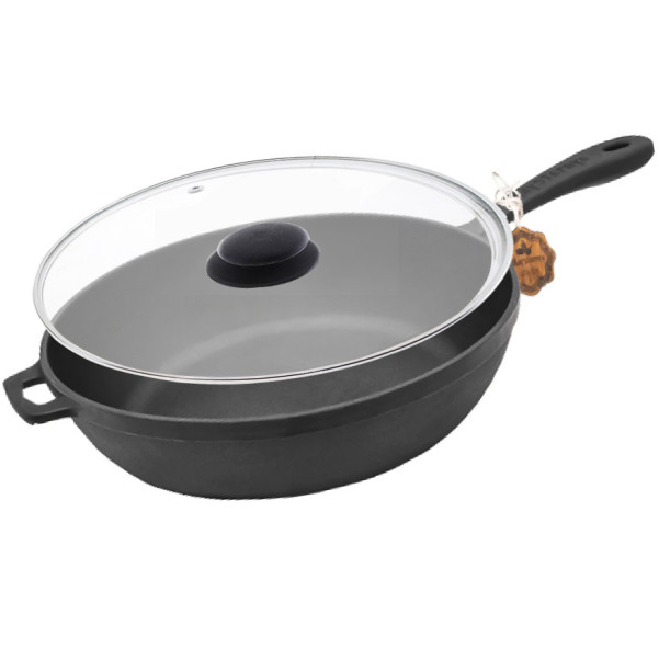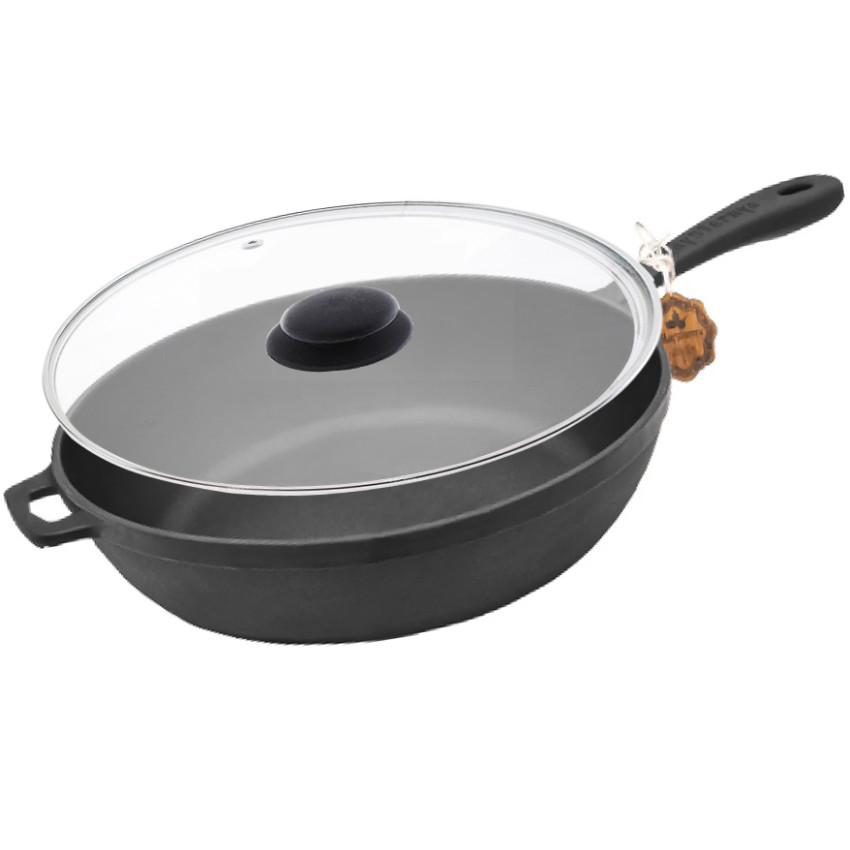 - У комплекті з сковорідкою йде скляна кришка, яка дозволяє контролювати процес приготування і спостерігати за приготуванням, не відкриваючи кришку.