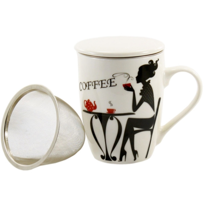 Чашка порцелянова 330мл з кришкою та ситом Cafe Sweet Daily