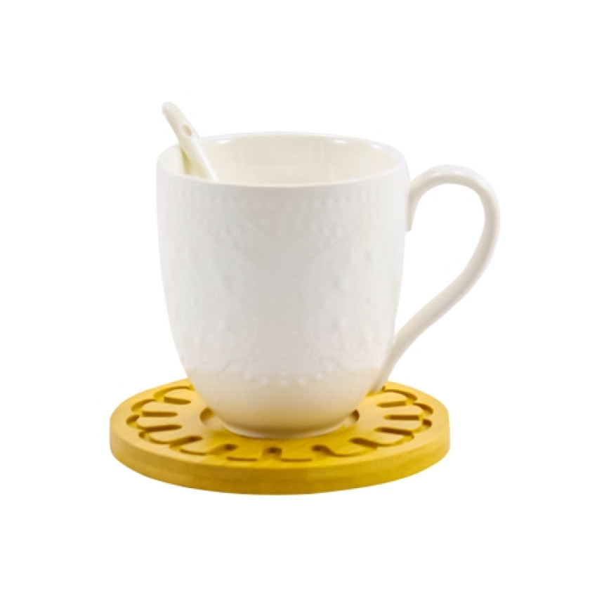Чашка порцелянова з ложкою та дерев'яною підставкою 300мл