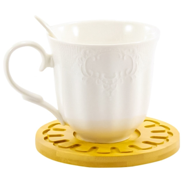 Чашка порцелянова з ложкою та дерев'яною підставкою 300мл