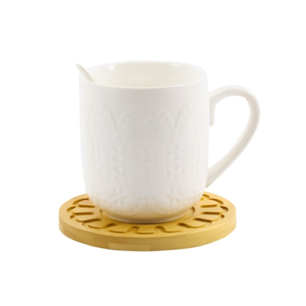 Чашка порцелянова з ложкою та дерев'яною підставкою 300мл